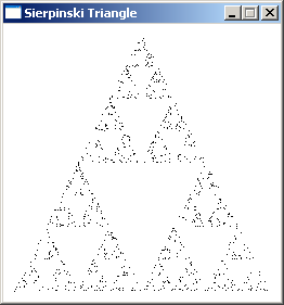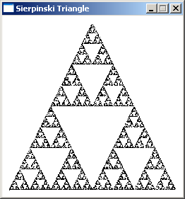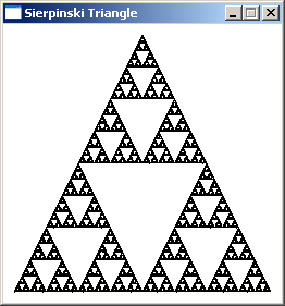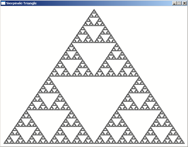 drawSierpinski(10, h - 10, w - 10, h - 10, w / 2, 10); //Call the sierpinski function (works with any corners inside the screen)