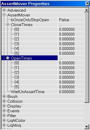 AssertMover has a separate setting for each keyframe. CloseTime[0] is the