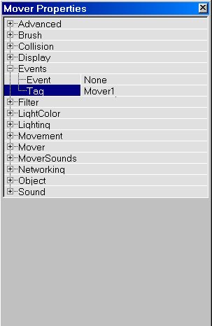 Warning: when you add movers, no matter how many, the Tag of all of them will be by default "Mover", this means all movers have the same Tag if you don't give them another one yourself. If you ever had doors acting strange when encroaching an elevator in your map, and wondered why, this is the reason. To avoid this give them different Tags or give them different ReturnGroups.