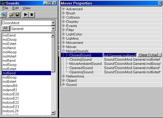 In this tutorial, when I say the mover is "open" then I mean it is at its last key, and when it is "closed" it is at its first key, Key0. A "closing" mover is one that is moving from the last to the first key, and an "opening" mover is one that is going from the first key to the last one. So even if the mover is not a door, I will still use "open" and "close" for these situations.